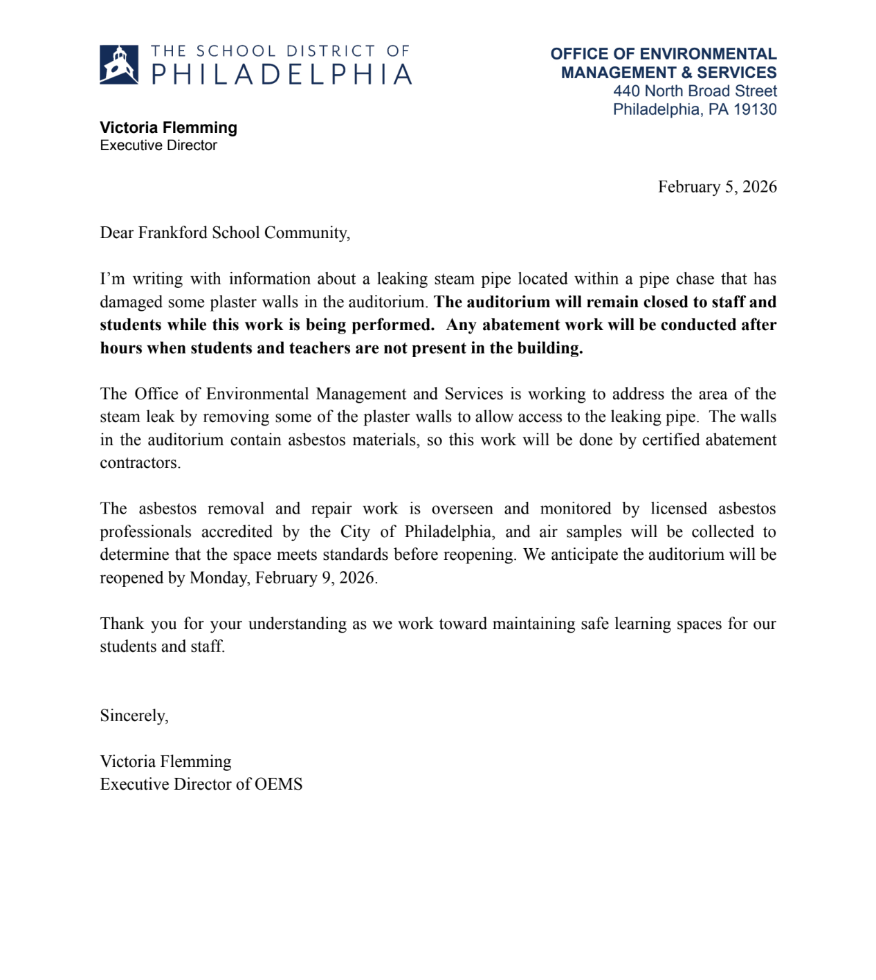 All Philadelphia School District Schools and Offices will be VIRTUAL on Tuesday, February 24 due to inclement weather.